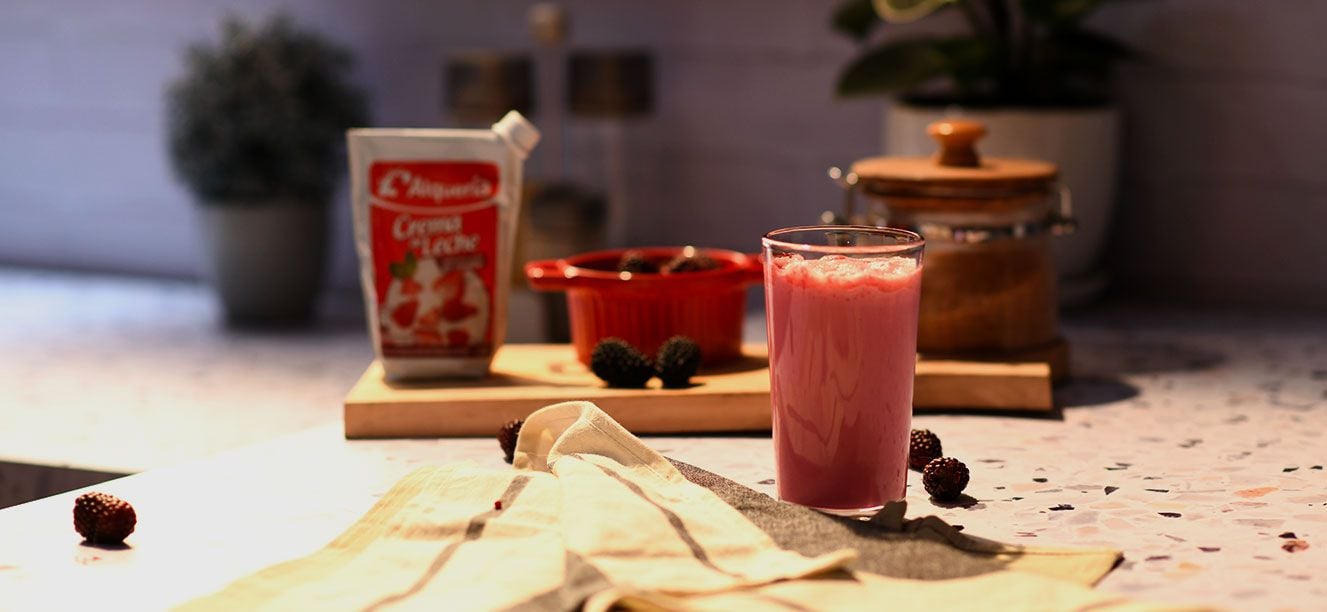 - 1Agrega a una licuadora la pulpa o mora congelada y la Leche Alquería. Licua