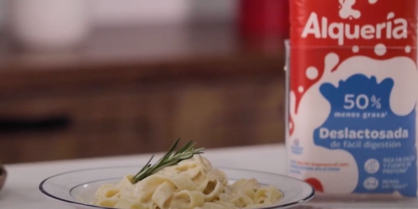 - 3Añade la Leche Alquería Deslactosada, la nuez moscada y el queso parmesano.