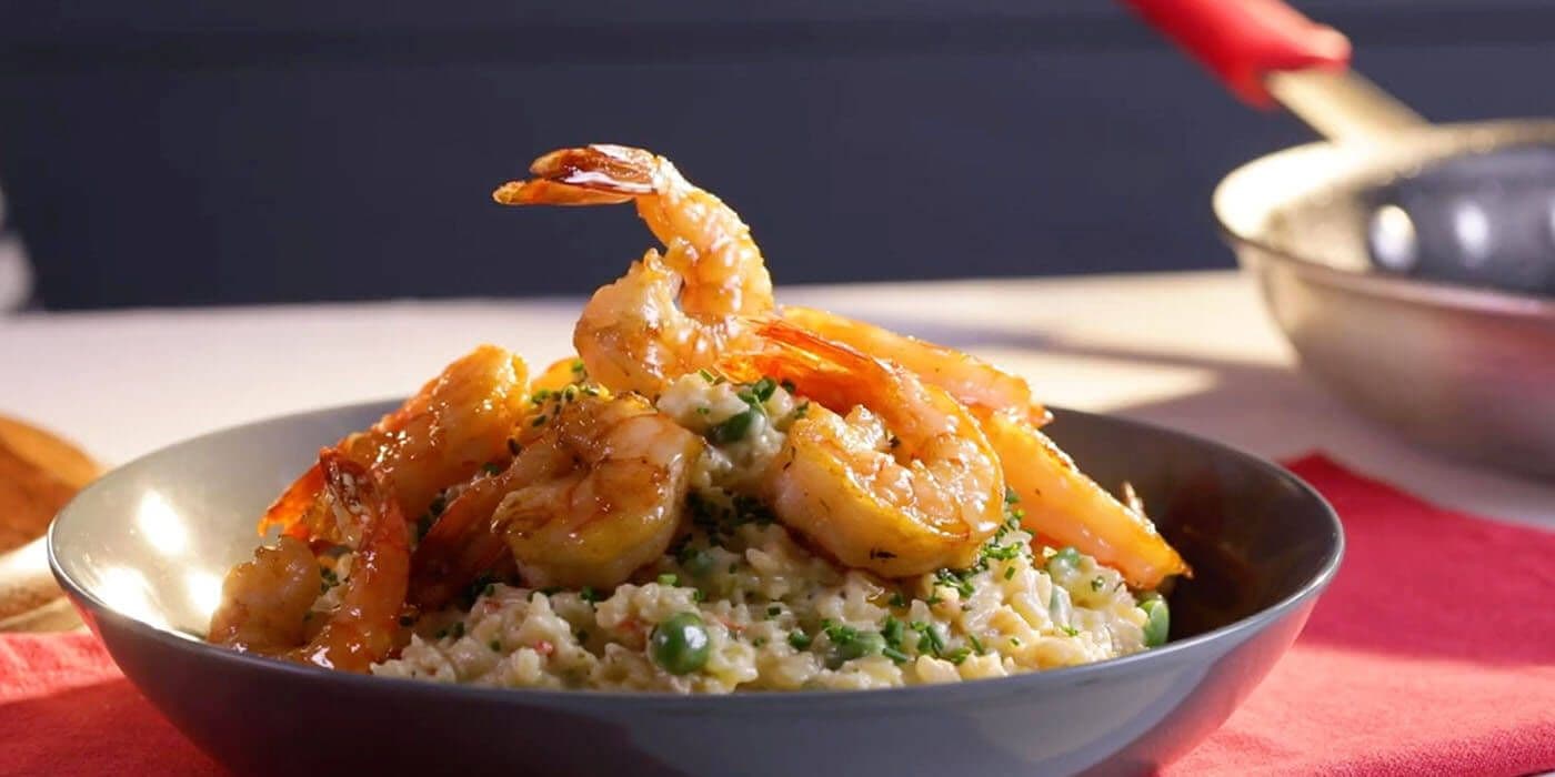 - 3En una sartén ponemos la mantequilla, doramos los camarones, retiramos del fuego y reservamos.
