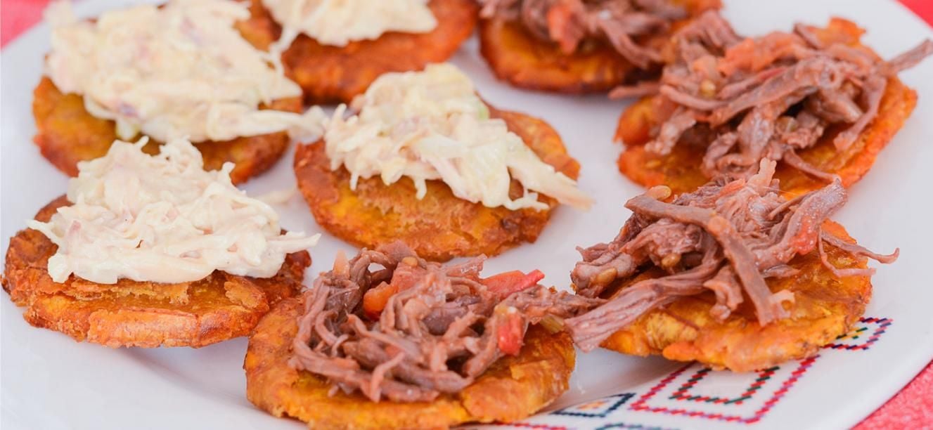 - 4Colocamos encima de los patacones la preparación de la carne desmechada y listo, se puede disfrutar en familia como unos ricos pasabocas.