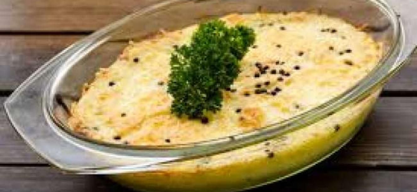 - 5Adicionamos la panceta o tocino dorado al puré y mezclamos. Adicionamos los dos quesos rallados encima (parmesano y mozzarella).